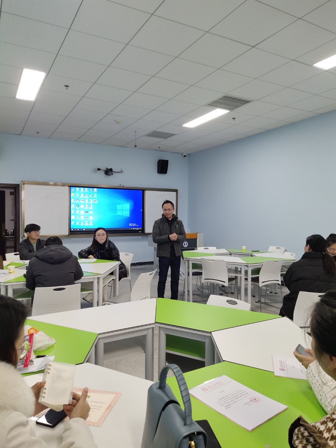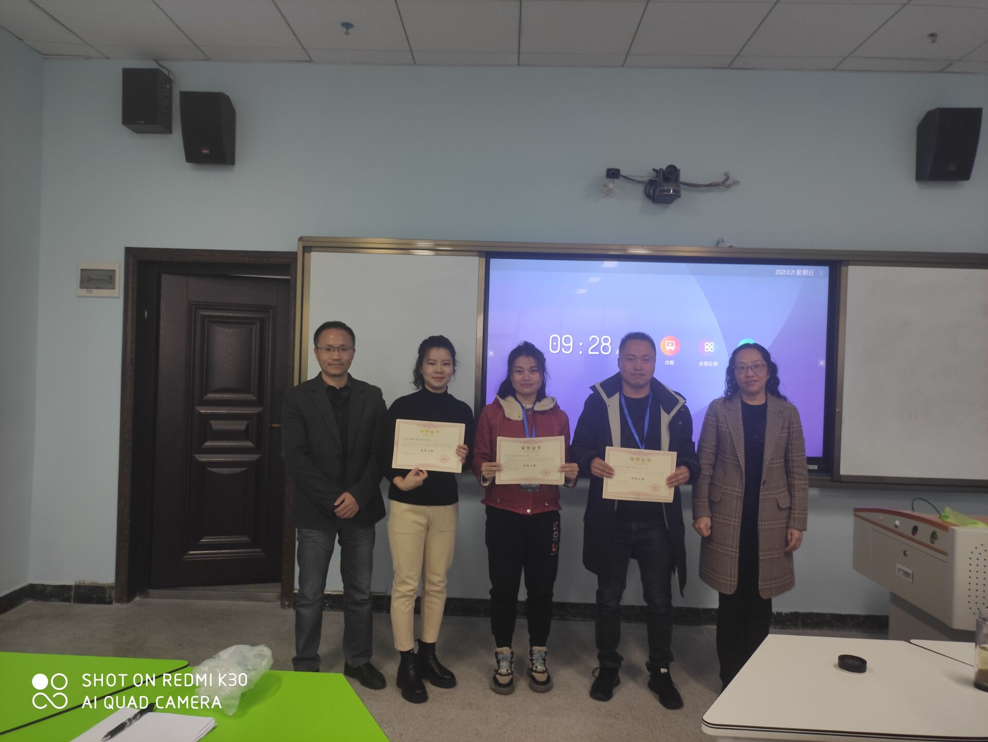 最后,在11月28日上午,贵州师范学院举办的“省培计划(2021)‘五育并举·融合育人’中学心理健康骨干教师培训项目”结业典礼在综合大楼504教室(一班)、505教室(二班)举行。教育科学学院党委书记彭祥友,副院长黎平辉、袁川,班主任杨雨鑫、莫太极,倪磊和其他教师,班主任助理等出席了本次培训结业典礼。