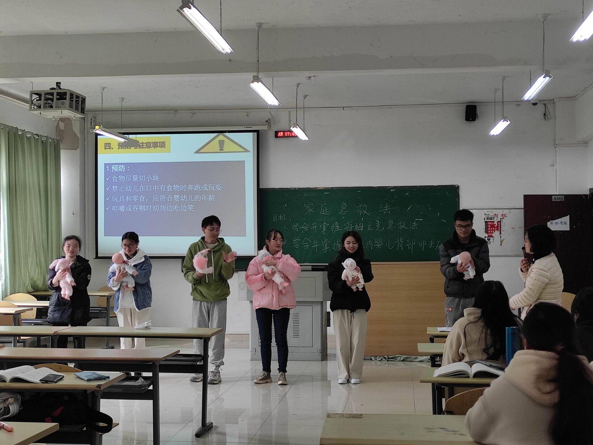 王雯颖老师讲授《家庭保健与护理》中的《家庭急救法首先雯颖播放视频导入新课通过视频情景再现,贴近学生的实际,激发学生的学习求知欲。其次,亲自示范,突破难点。王雯颖讲授动作要领,分解动作利用图解和示教视频,向学生一再强化操作的要点,引导学生动手操作,培养学生实践操作的能力。再次,分组练习实际操作强化、攻克教学重点、难点。老师一个动作一个动作进行纠正并指导、评价,反复操作,保证学生能正确掌握动作要领在操作过程中,培养学生团结协作、互帮互助的意识。在教学接近尾声时,王雯颖回顾课堂总结急救法和急救注意事项,强调“掌握一项技能,挽救一条生命”的急救意识,预防和减少意外事故的发生
