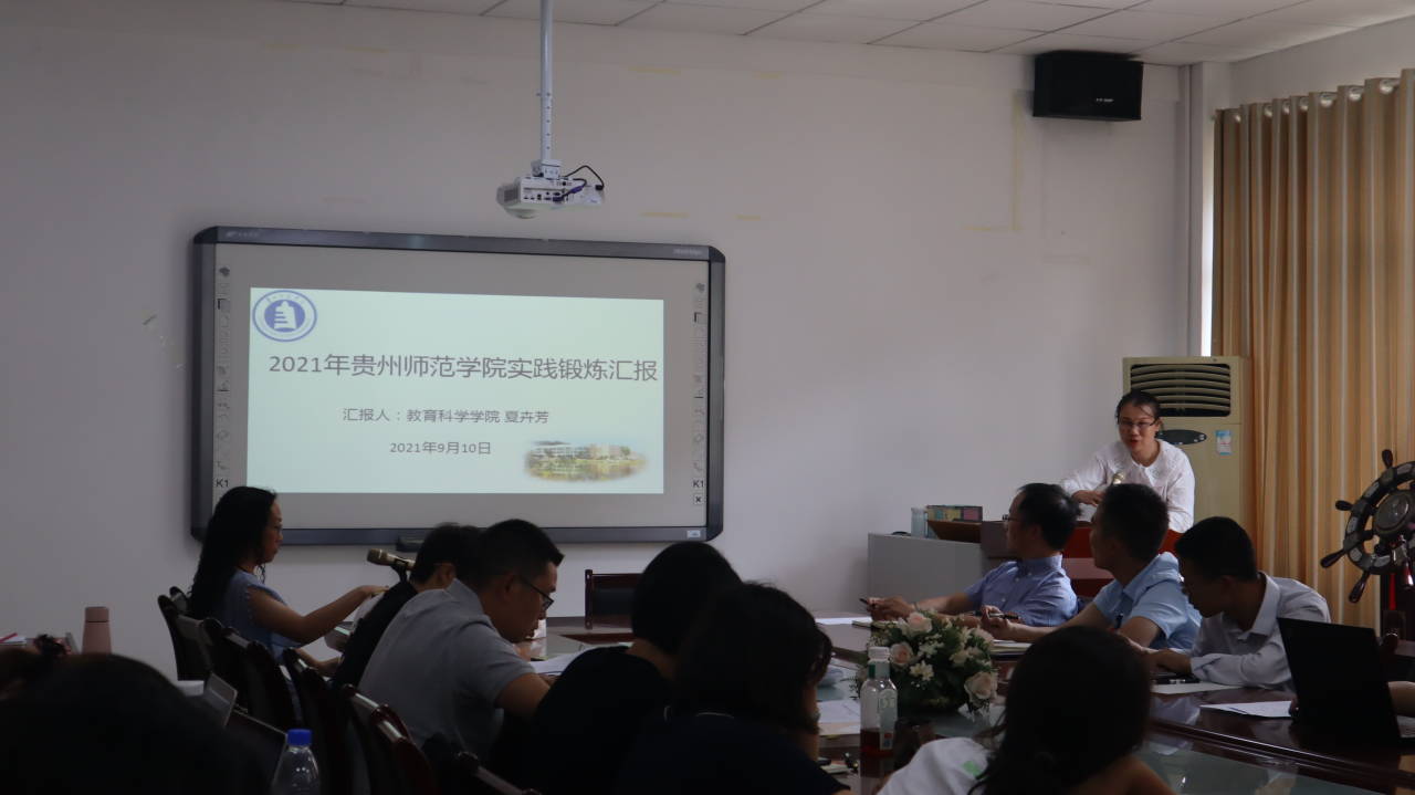 2021年9月10日下午,教育科学学院组织跟岗实践教师在学院会议室开展跟岗实践学习汇报交流会,夏卉芳老师做了在贵阳市乌当中学心理中心与贵阳市云岩区惠智学校跟岗实践情况分享与交流,王雯颖老师也汇报和分享了在贵阳市六一幼儿园名师工作室跟岗实践的情况,教科院全体教师参与了此次汇报交流会。
