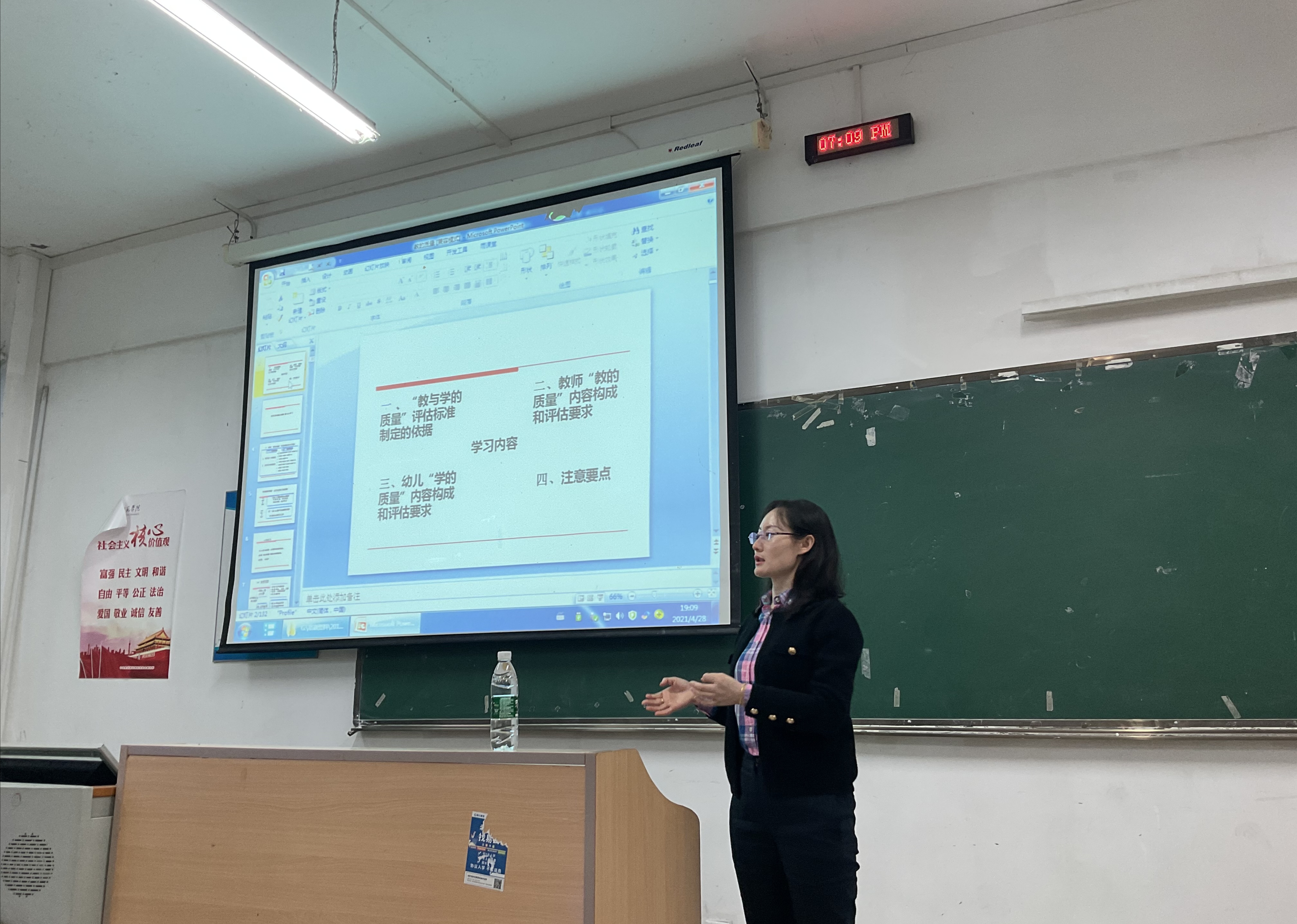 为增强对幼儿园评估相关知识的了解,丰富学生的视野,更好的将理论知识与实践知识结合,2021年4月28日晚上7点,教育科学学院学前教育系邀请了贵阳市教科所王芳芳老师为2018级全体同学在逸夫楼204进行了主题为“贵州省幼儿园分类评估标准”的讲座。