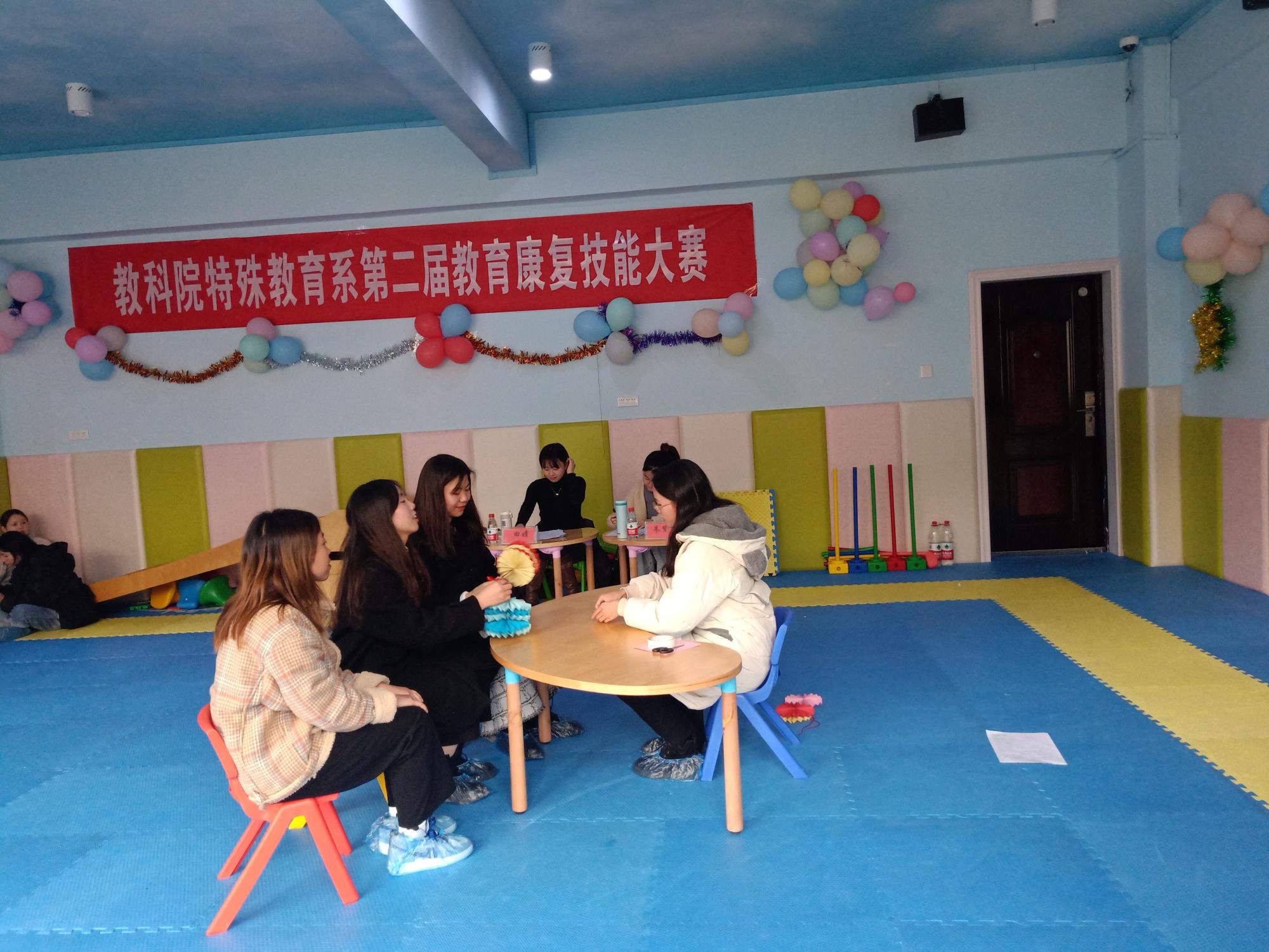12月3日下午,我院特殊教育系举行了第二届教育康复技能大赛团体组的比赛,特殊教育系系主任朱紫桥、教师田婧和安文军担任了本次比赛的评委。共有11组同学晋级到团体课比赛的决赛。