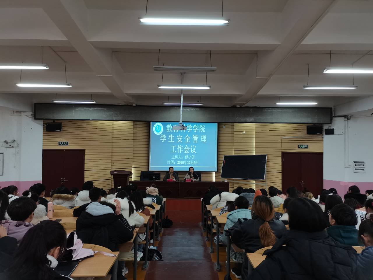 2020年12月9日中午,在宁静楼152阶梯教室我院召开了学生安全管理会议。我院党委副书记傅小芳出席了会议,团委书记张源主持会议,各班班长、心理委员及各寝室室长参加了会议。