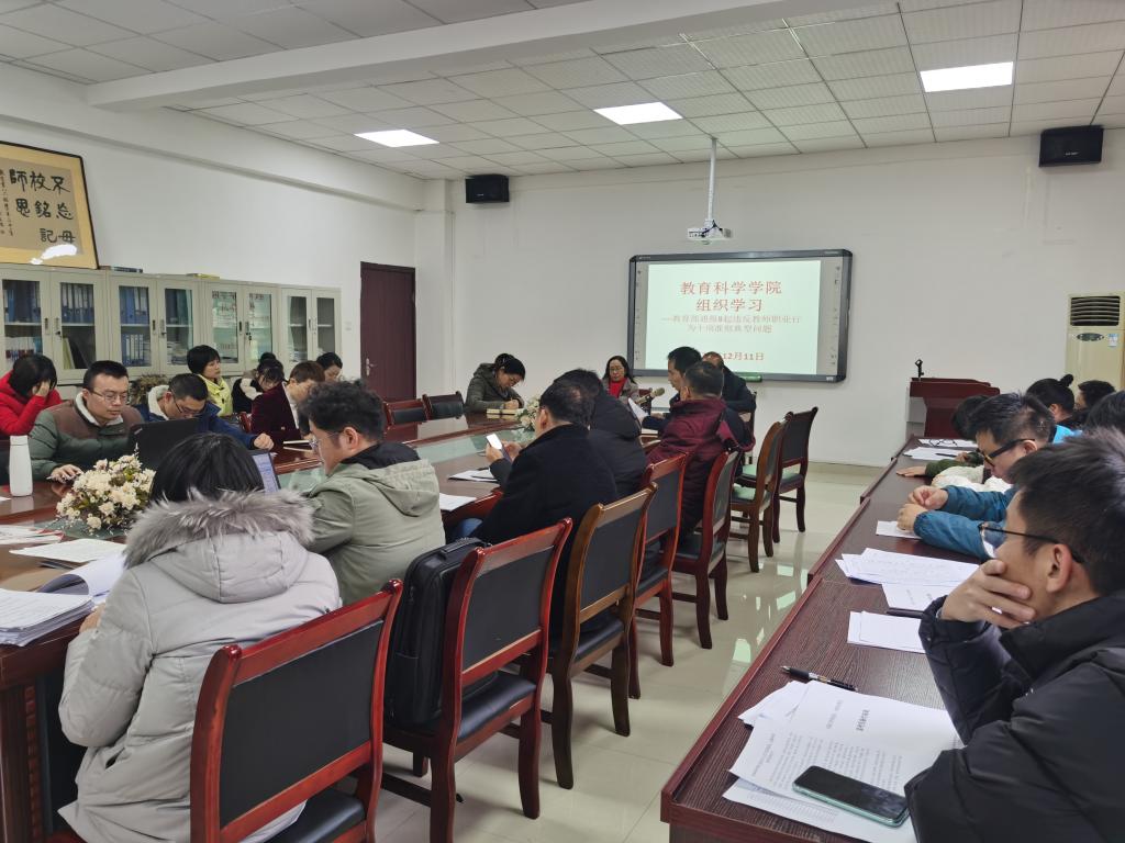 为加强师德师风建设,2020年12月11日下午14:00,教育科学学院在逸夫楼A321组织全体教师深入学习《教育部通报8起违反教师职业行为十项准则典型问题》,本次活动由刘红院长主持。