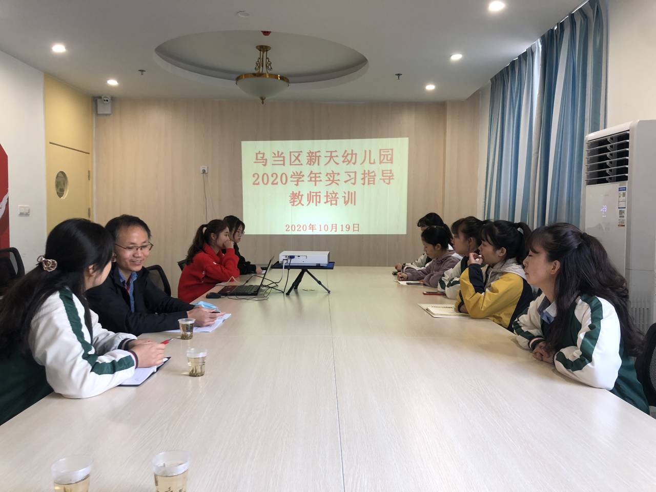 为深入了解实习生的工作情况和思想动态,教育科学学院副院长黎平辉和科研助理吴桂桃于2020年10月19日到高新幼儿园看望实习生,并出席乌当区新天幼儿园实习指导教师培训座谈会。