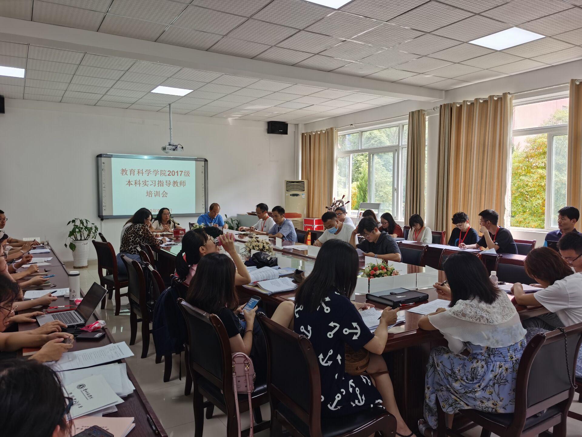 为了明晰实习期间指导教师工作职责,提升教师实习指导的有效性,进一步保障学生实习效果。9月5日下午,教育科学学院2017级本科实习指导教师培训会在逸夫楼322会议室召开,院党委书记彭祥友、院长刘红、党委副书记傅小芳、副院长黎平辉、副院长袁川以及各专业指导教师参加了此次会议。