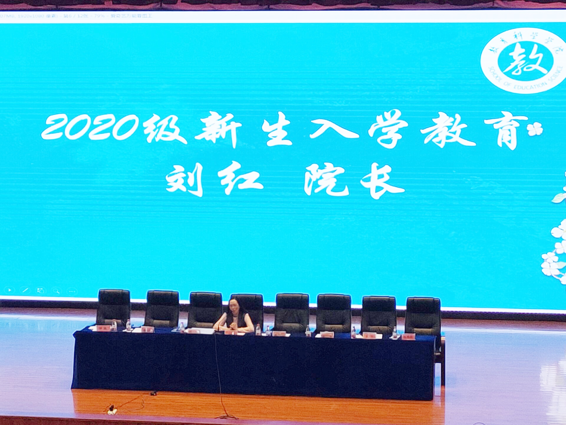 9月20日下午,教育科学学院在逸夫楼演播厅举行了2020级新生入学教育。学院党委书记彭祥友、院长刘红、副书记傅小芳、副院长黎平辉、副院长袁川及团委负责人张源作为主讲人为2020级新生开展了入学教育专题活动。入学教育活动由张源主持。