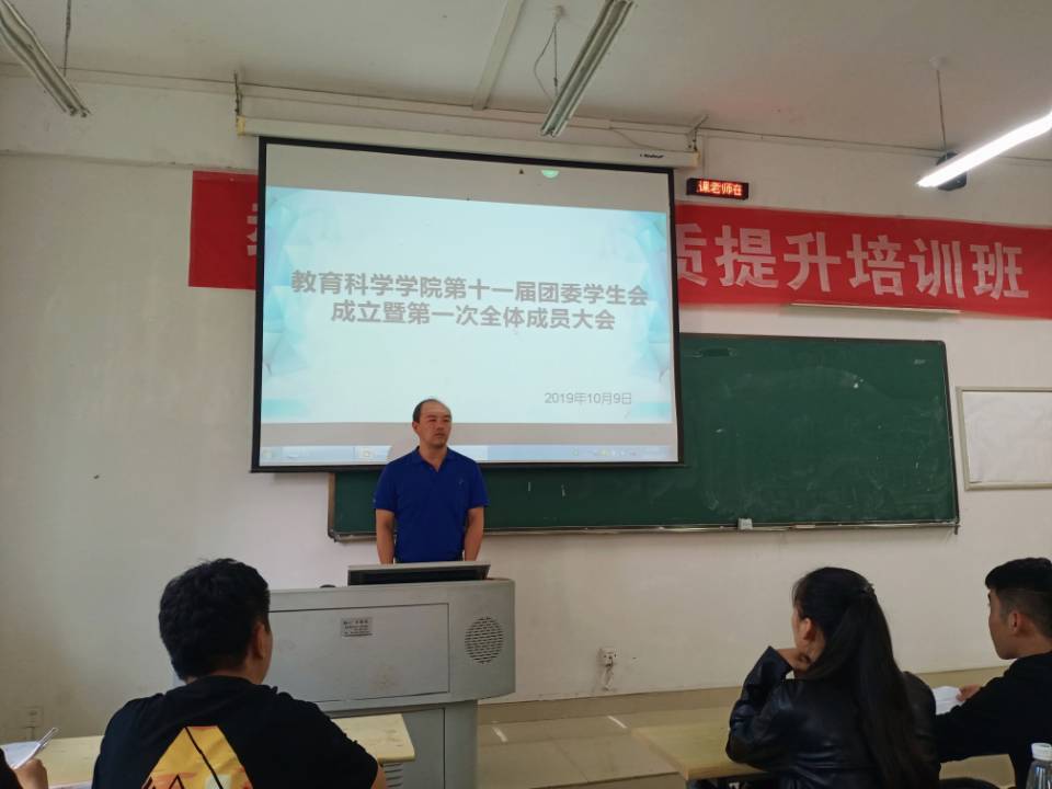 10月9日中午12:20,贵州千亿qy88国际官网入口在逸夫楼503举行了第十一届团委学生会成立暨第一次全体成员会议。教育科学学院党委书记彭祥友,副书记傅小芳,团委书记张源出席此次会议。