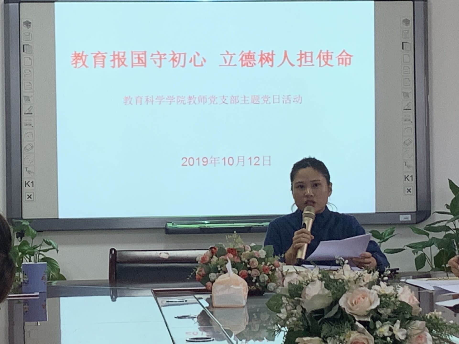 10月12日下午,教育科学学院教师党支部在学院会议室开展了主题为“教育报国守初心,立德树人担使命”党日学习活动,此次活动由教师党支部书记李琴主持学习。