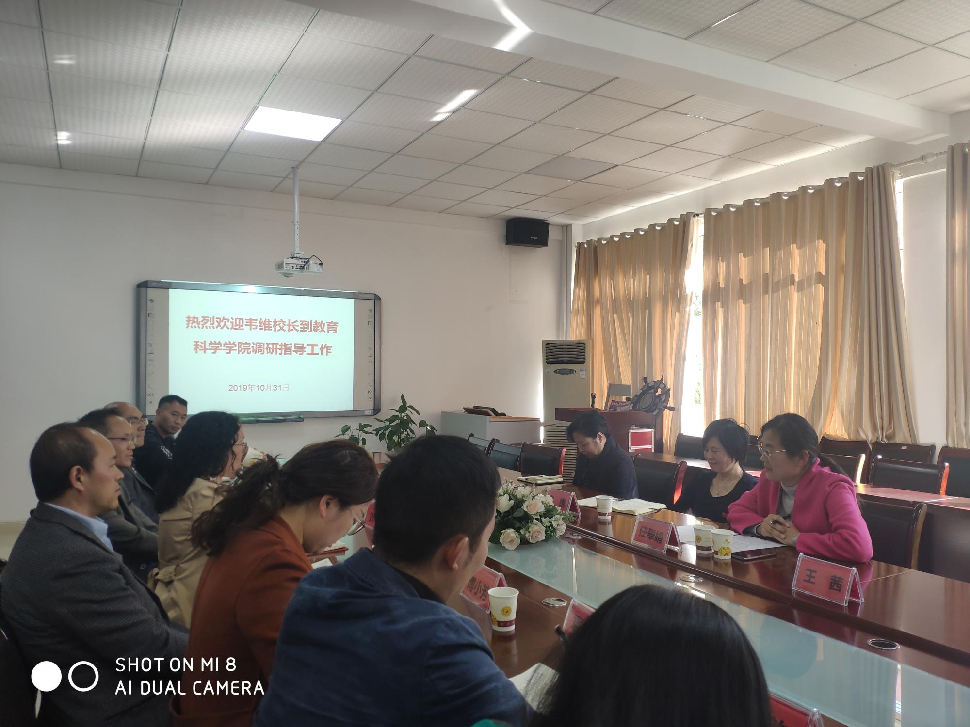 韦维校长听取教育科学学院刘红介绍学院基本情况