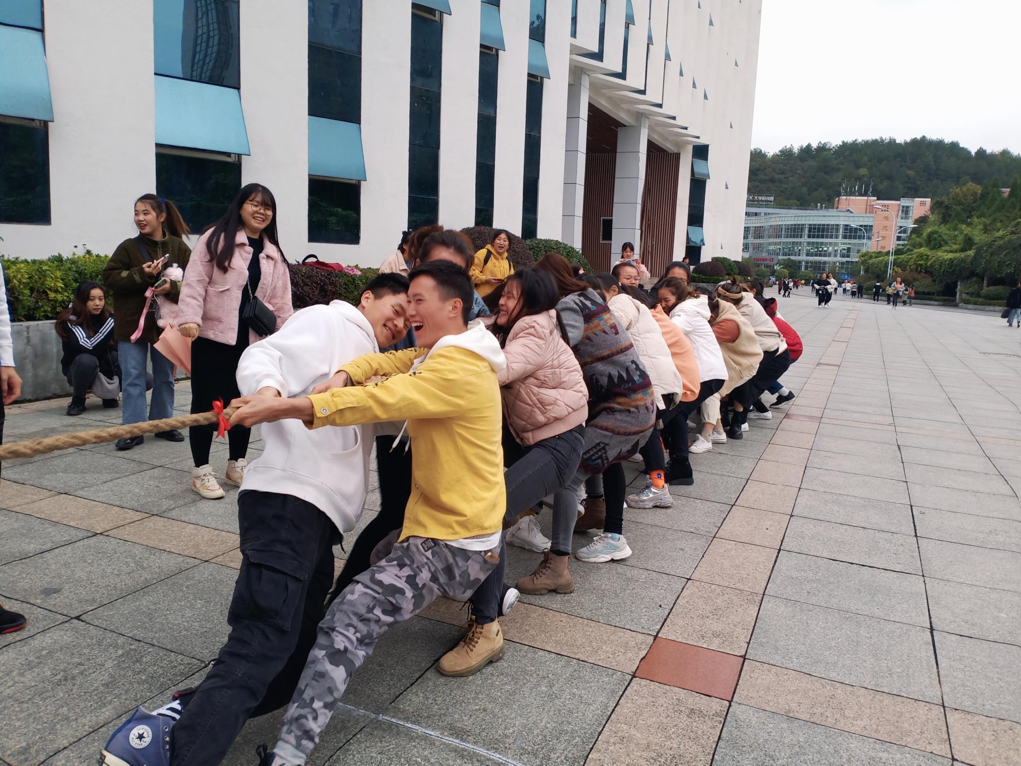 11月25日下午,在凤凰广场举行2019年教育科学学院第五届“青春杯”拔河比赛,全院共14支参赛队到场参加。