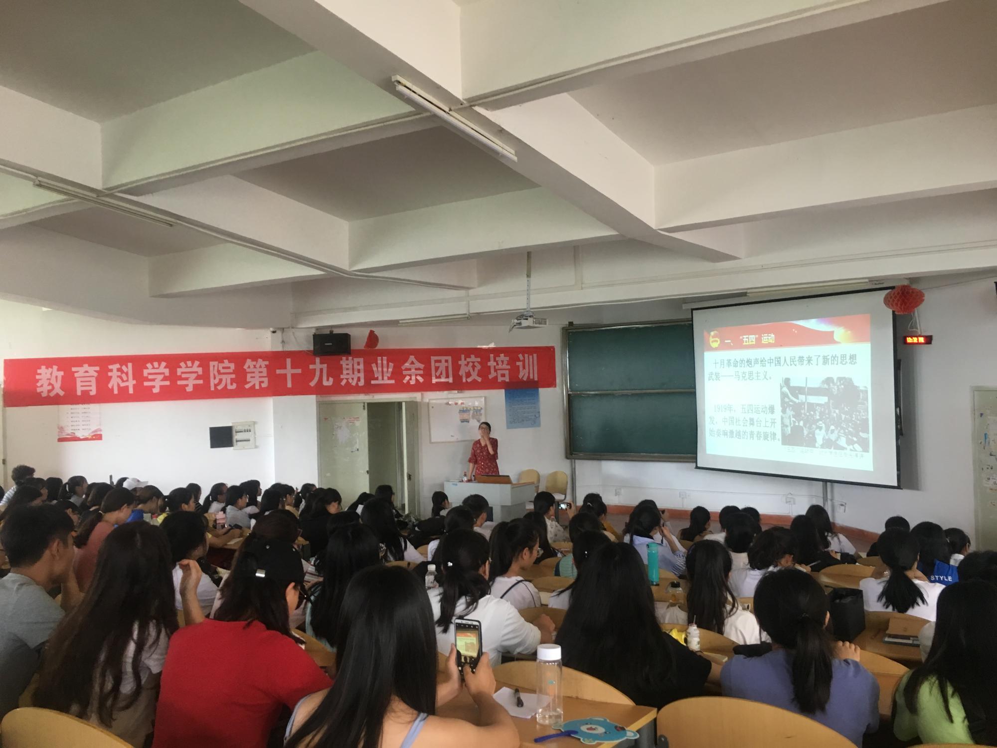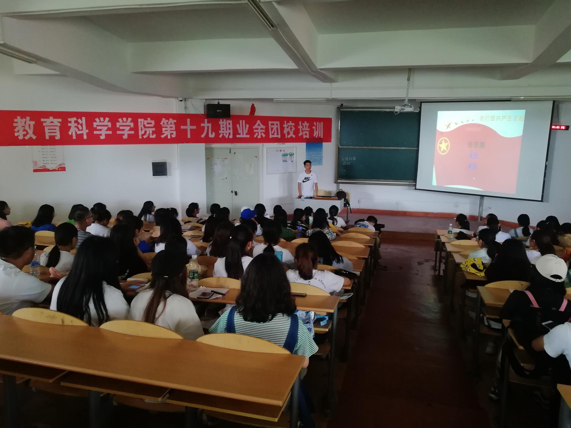 2019年6月11日至14日,教育科学学院第十九期业余团校培训班在宁静楼436教室进行。全院共102名学员参加了此次培训。