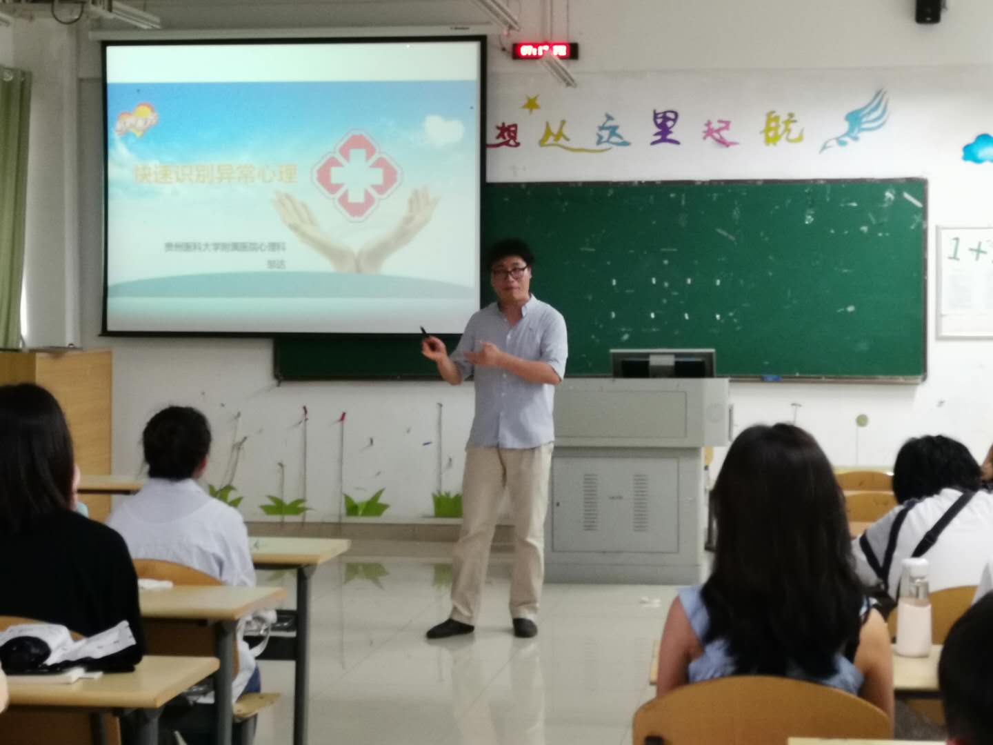 6月20日晚上,我校教育科学学院邀请贵州医科大学附属医院心理科邹达医生,在逸夫楼514教室做了“常见心理问题的诊断及咨询”的专题讲座,应用心理学系2016级学生和部分老师参加了此次讲座。