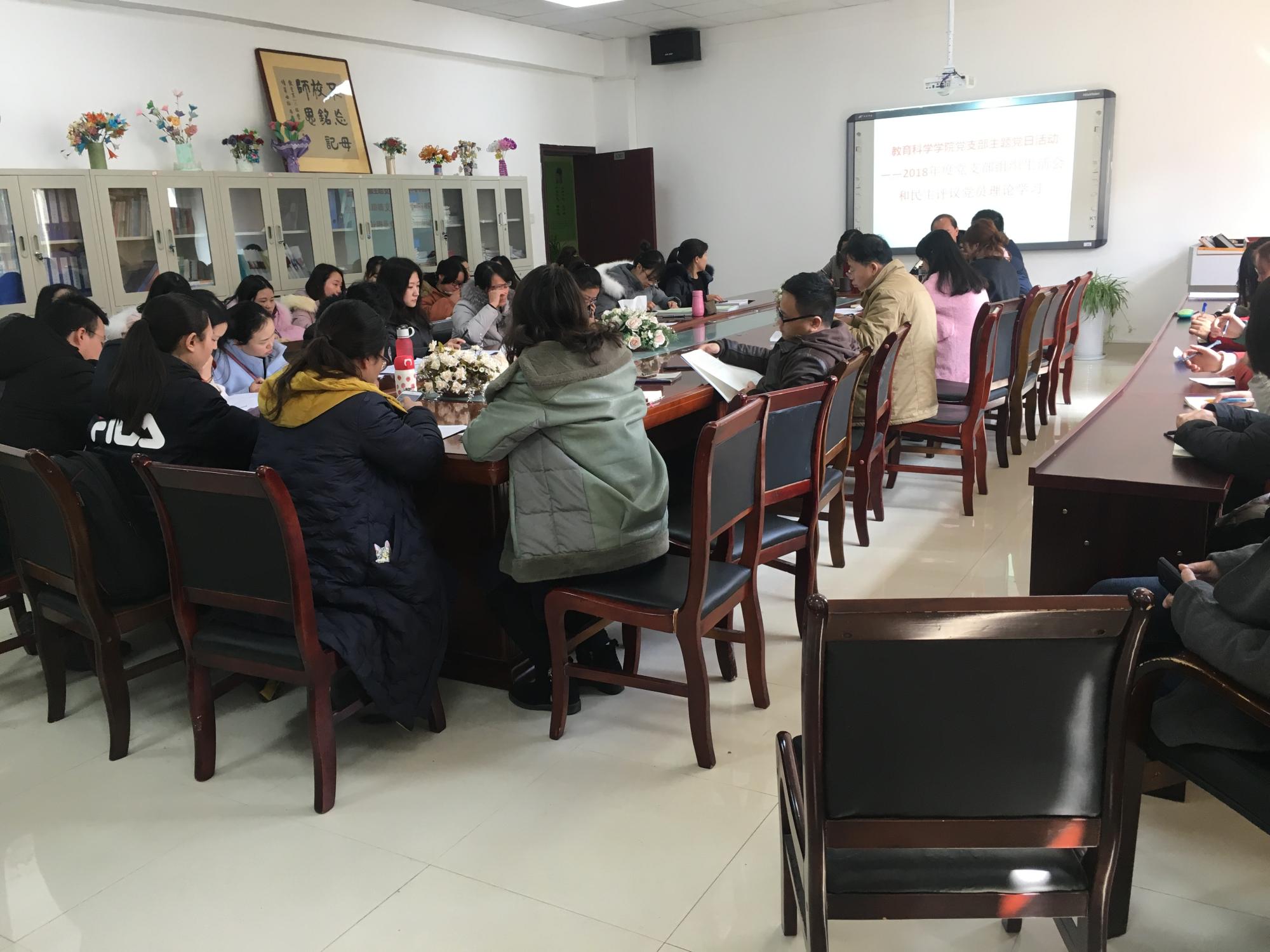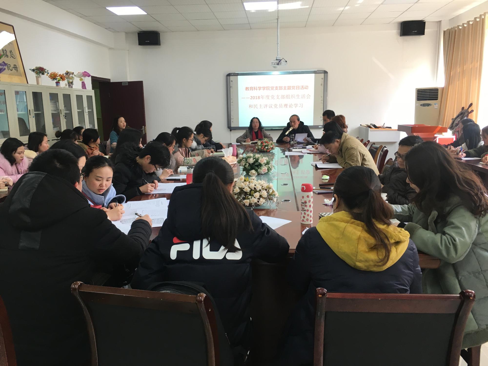 3月1日下午,教育科学学院全体党员在学院会议室开展了党支部主题党日学习活动:2018年度组织生活会和民主评议党员理论学习,教师党支部书记李琴主持学习。