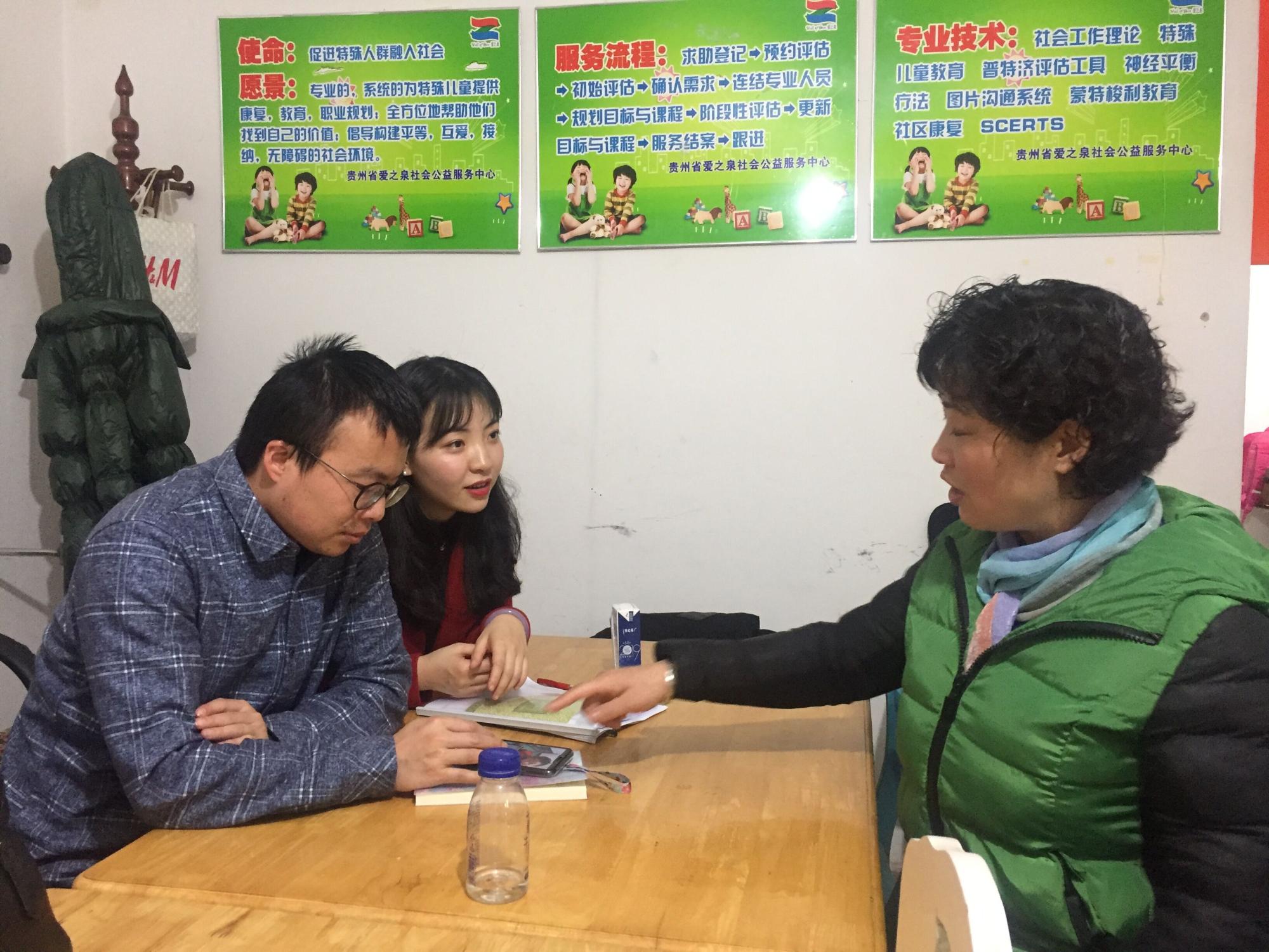 我院团委书记张源、心理学系主任罗凯老师在与爱之泉教学管理老师邓莲爱做课前沟通