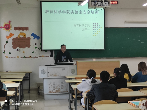 4月14日中午,贵州千亿qy88国际官网入口在逸夫楼501教室给教育科学学院19、20、21级学生代表进行实验室安全教育培训。在培训会上,唐辉一详细讲解了实验室操作使用相关规定以及用水和用电安全,重点阐述了当遭遇实验室火灾时的逃生方式方法。同时,唐辉一老师还悉心解答了学生代表关于实验室使用方面的相关问题。