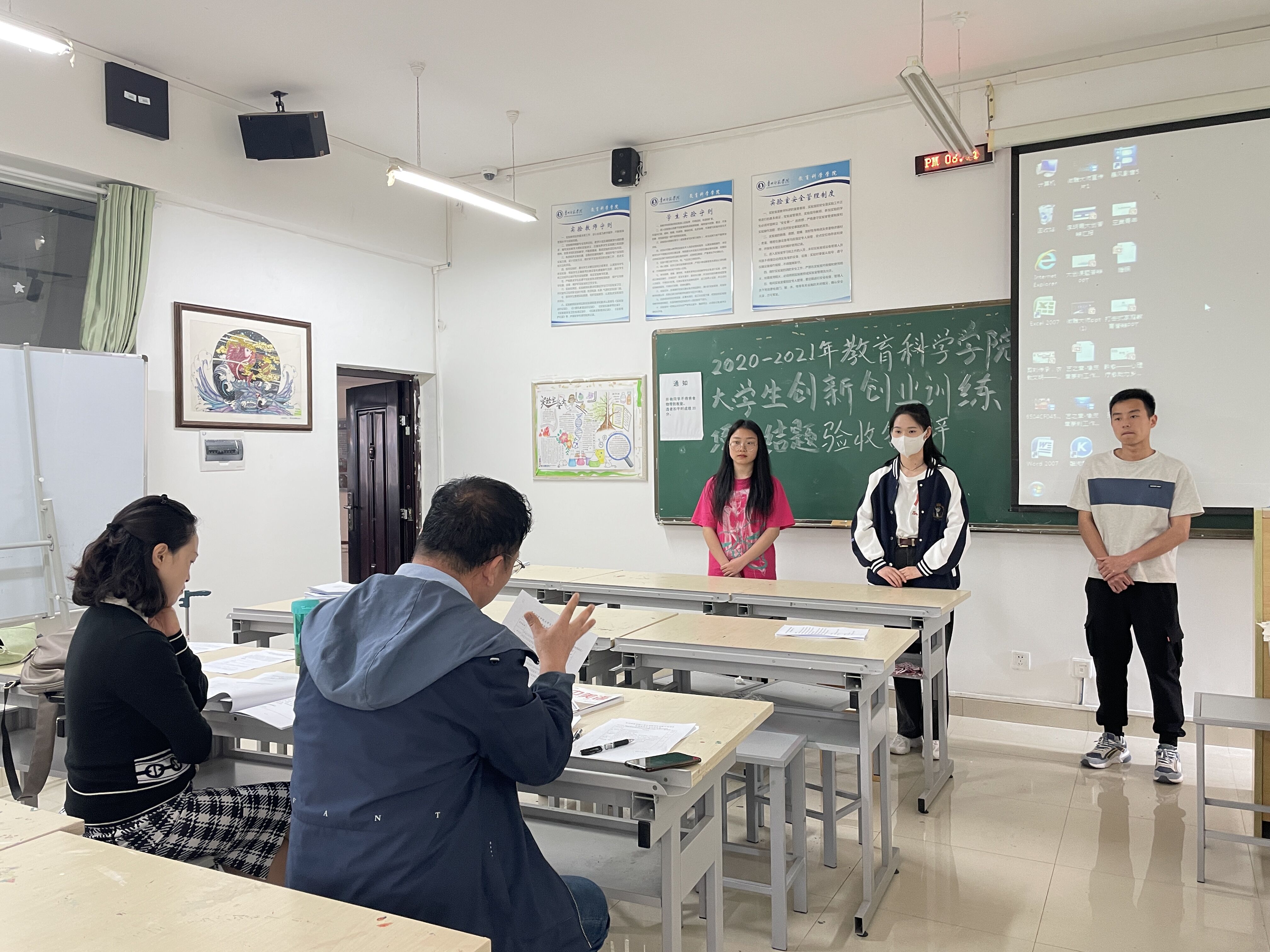 5月7日上午,本着“我创故我在”的精神,为提高我院各专业学生创新创业能力和自我发展意识,教育科学学院在逸夫楼413教室进行了“2020——2021年度大学生创新创业训练计划项目结题验收答辩”。
