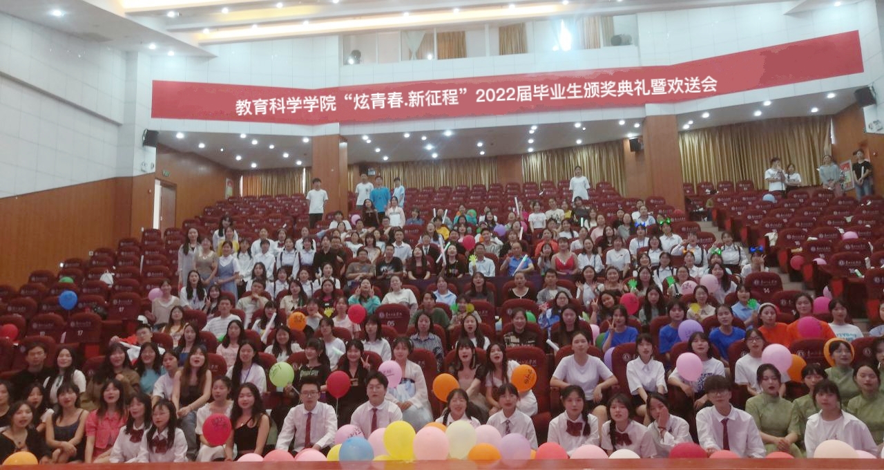 6月15日下午,教育科学学院在逸夫楼演播厅举行了教育科学学院“炫青春.新征程”2022届毕业生颁奖典礼暨欢送会。学院全体领导、部分教师、所有辅导员出席此次盛会。