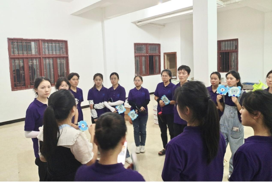 傍晚,日落月升,服务队在石坂村广场进行文娱课程的排练。最后,一起“黔”行民族团结社会实践服务队开展今日工作总结,并对第二天的日程安排进行梳理确认,以保证第二日活动的顺利开展。