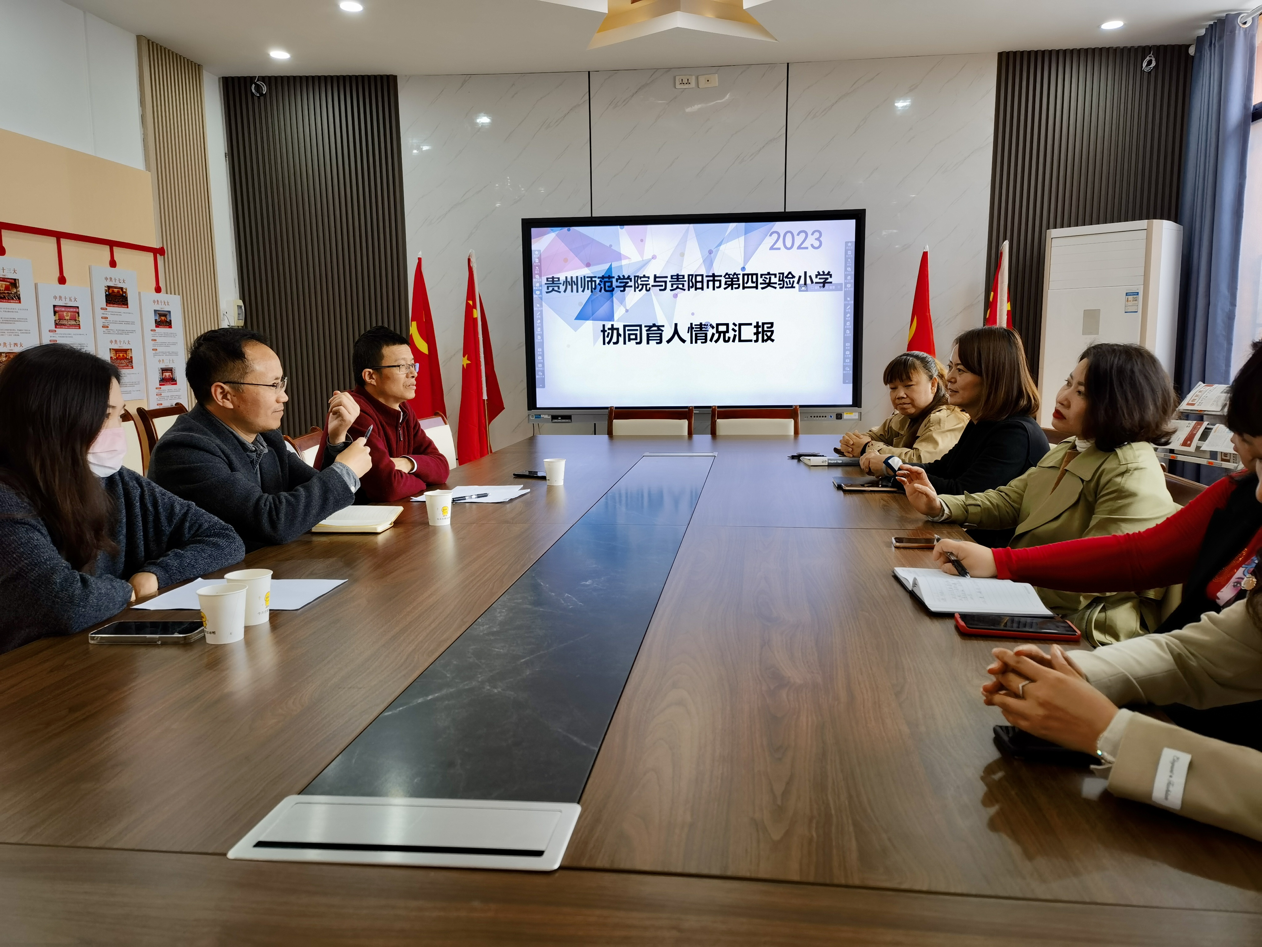 为促进学生见习、实习、研习一体化发展,推动艺术教育专业本科教学质量提高,不断拓宽学生就业渠道。2023年5月10日,贵州千亿qy88国际官网入口赴贵阳市第四实验小学就共建协同育人实践基地,“访企拓岗”进行深度交流。教育科学学院院长宋万琚、副院长黎平辉、艺术教育专业教师张怡出席了此次交流座谈会。