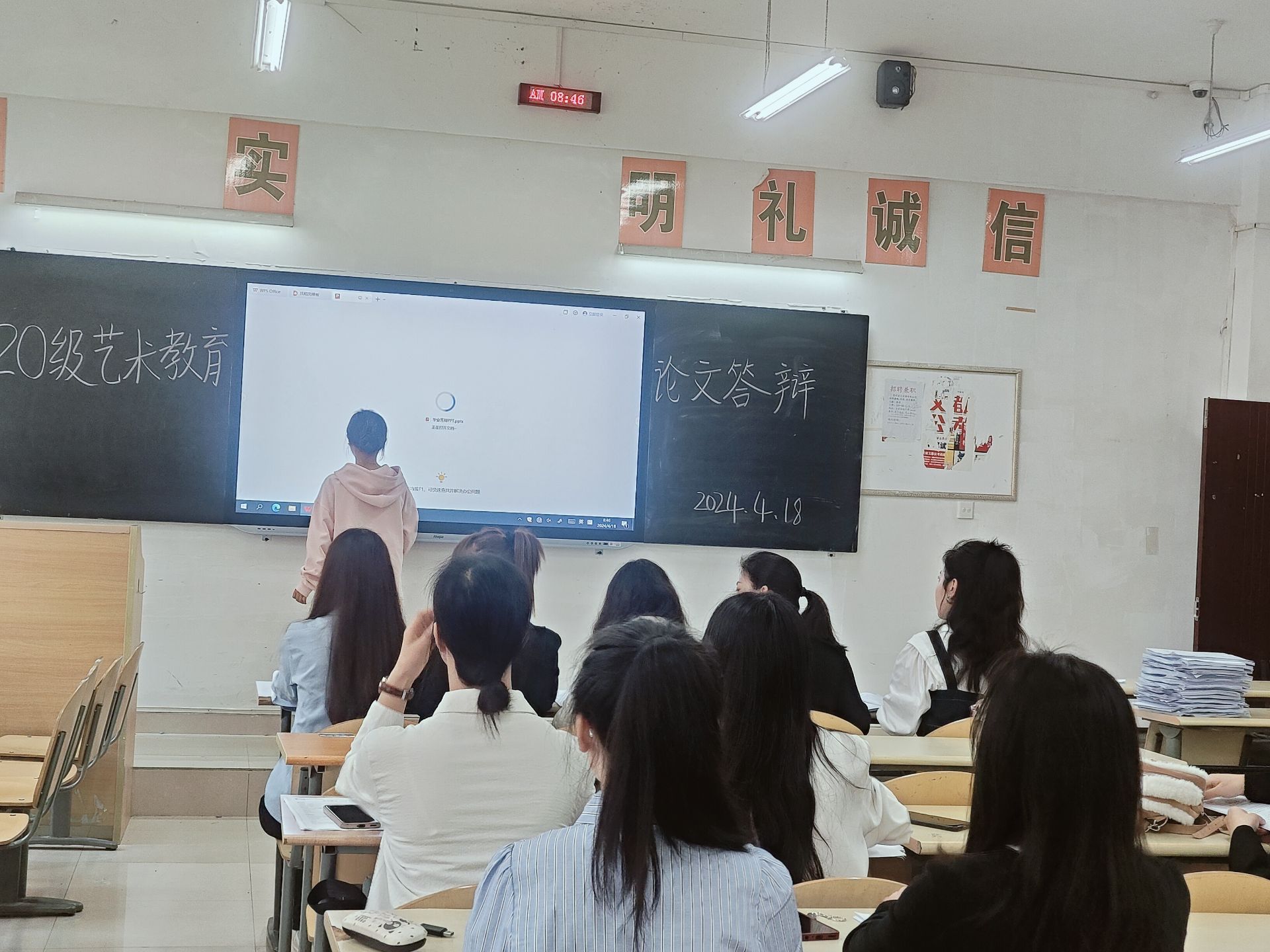 通过本次论文答辩,检验了2024届毕业生综合素养和育人效果,有效加强了2024届艺术教育专业毕业论文的质量,进一步提升了艺术教育专业的人才培养质量。