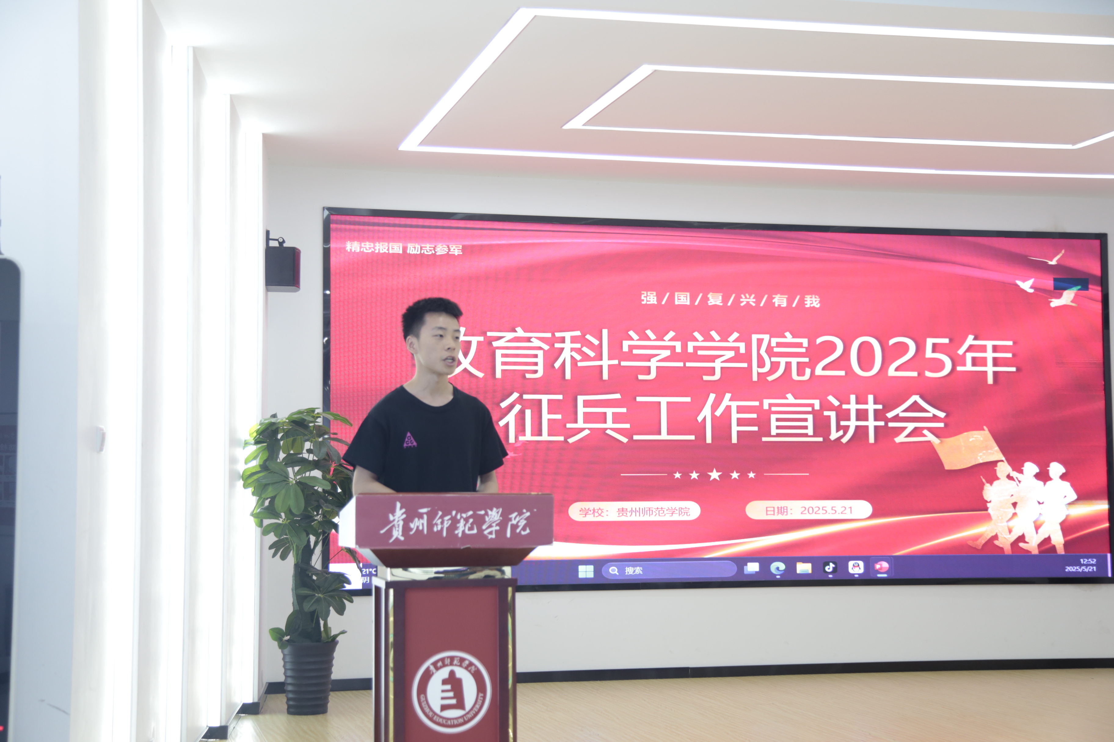 为深入贯彻新时代强军思想,激发青年学子参军报国热情,5月21日,教育科学学院在一站式学生社区服务发展中心开展2025年征兵工作宣讲会。活动由教育科学学院党委副书记傅小芳、优秀退役大学生代表2022级学前教育专升本班学生熊治进行现场宣讲。全院各年级有志参军的学生参与了此次活动。此次活动由辅导员张思远老师主持。