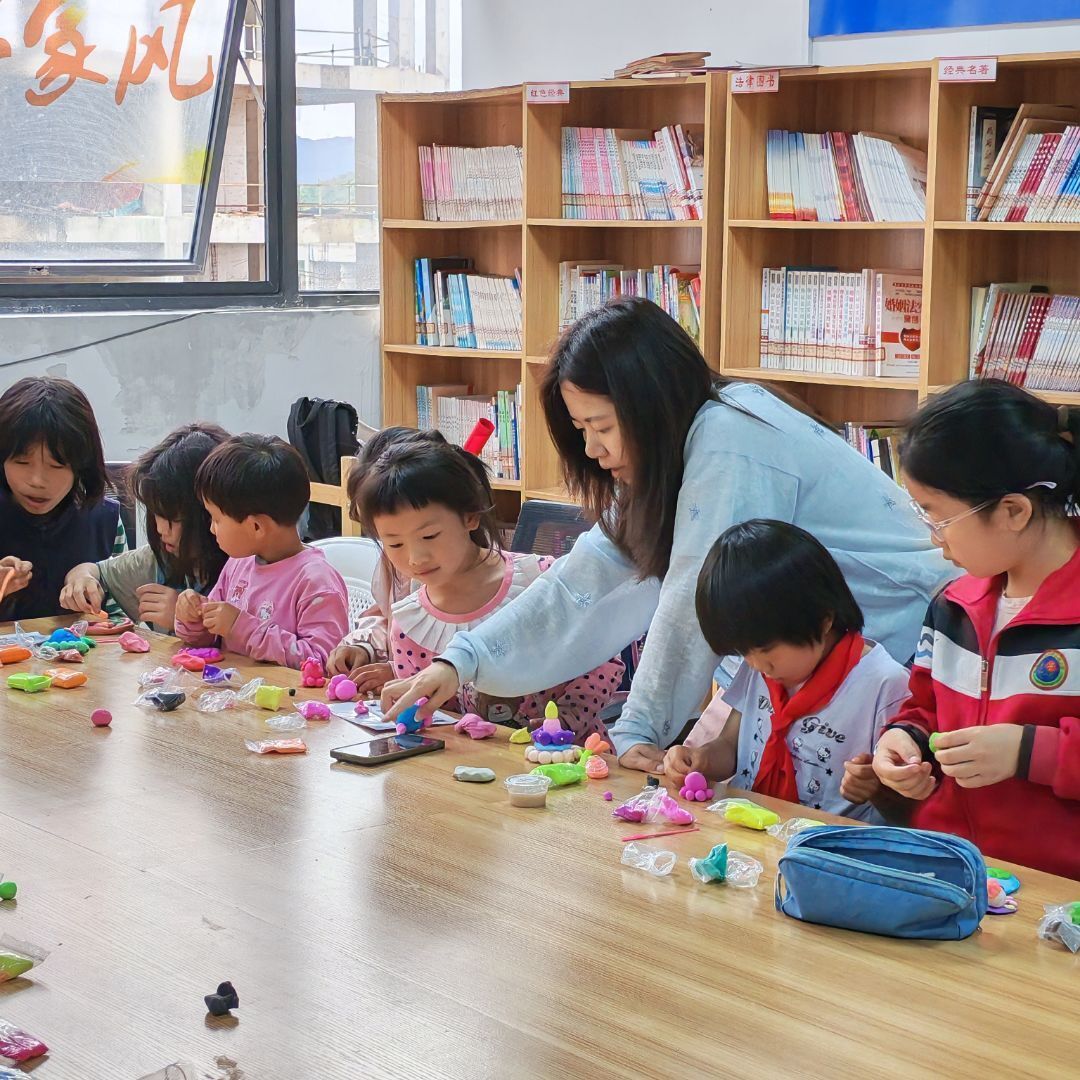 活动伊始,教育科学学院志愿者为小朋友们进行汇报讲解,以生动有趣的方式分享知识与故事。随后,鼓励小朋友们自主解读汇报内容,充分调动他们的积极性与思考能力,现场氛围热烈,孩子们踊跃发言。接着,活动进入黏土创作环节,志愿者们根据小朋友们的汇报主题,引导他们用黏土进行创作。小朋友们发挥想象力,将所思所想塑造成一个个独特的黏土作品,在动手实践中深化对知识的理解。
