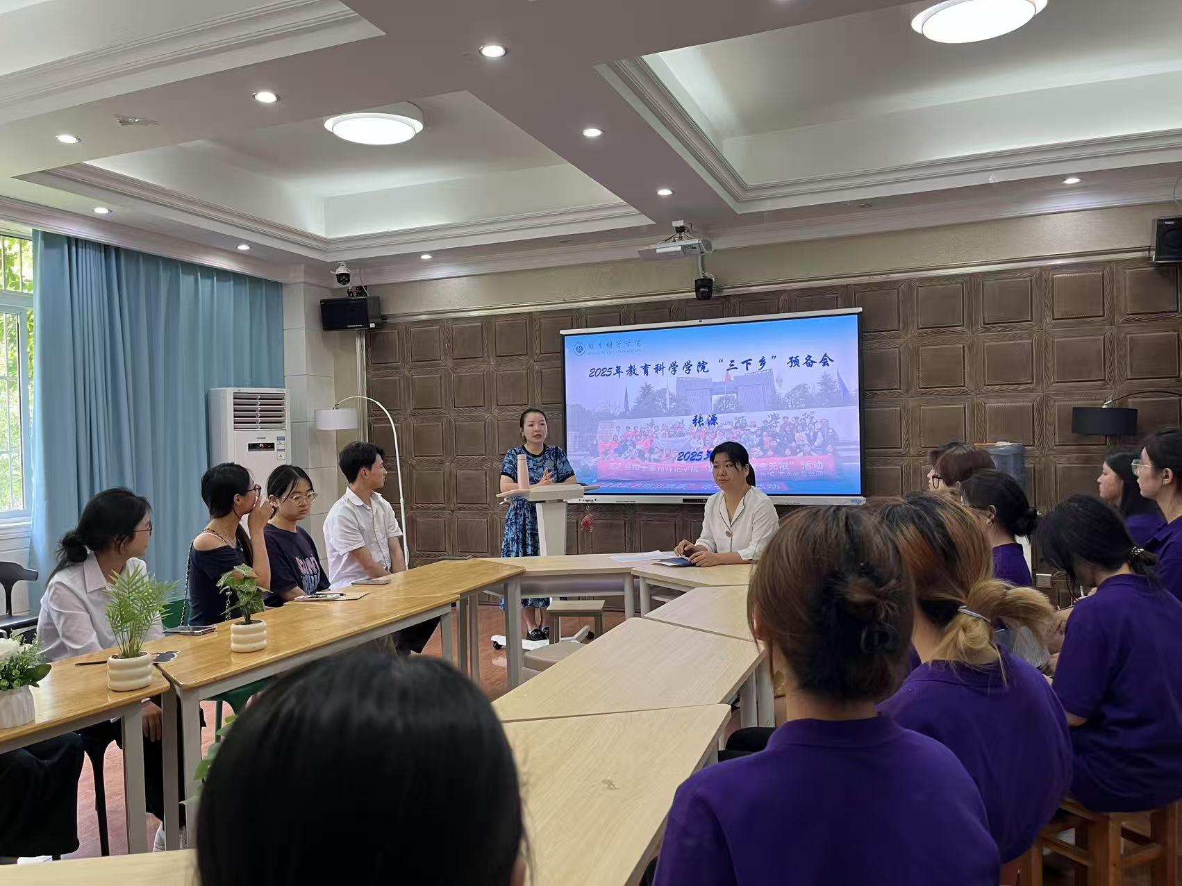 7月4日下午,教育科学学院活动室召开了2025年暑期“三下乡”社会实践活动安全教育会议。会议由学院团委书记张源主持,党委副书记傅小芳出席本次会议,“三下乡”志愿者团队全体成员参加。