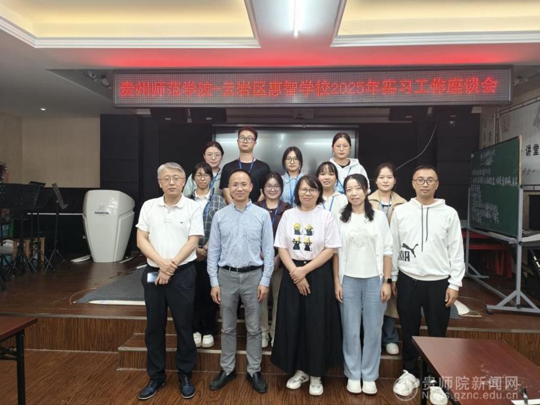 为了提升培养特殊教育专业教育实习效果,深化基地校合作育人成效,2025年9 月 30 日,贵州千亿qy88国际官网入口副院长黎平辉、贵州千亿qy88国际官网入口教学督导莫太极、贵州千亿qy88国际官网入口实习点院内负责教师夏卉芳一行,前往云岩惠智学校看望实习生,并召开实习工作座谈会。贵州千亿qy88国际官网入口8 名特殊教育专业实习生、云岩区惠智学校梁波校长、副校长黄礼琼、何佳主任等参加本次座谈会。