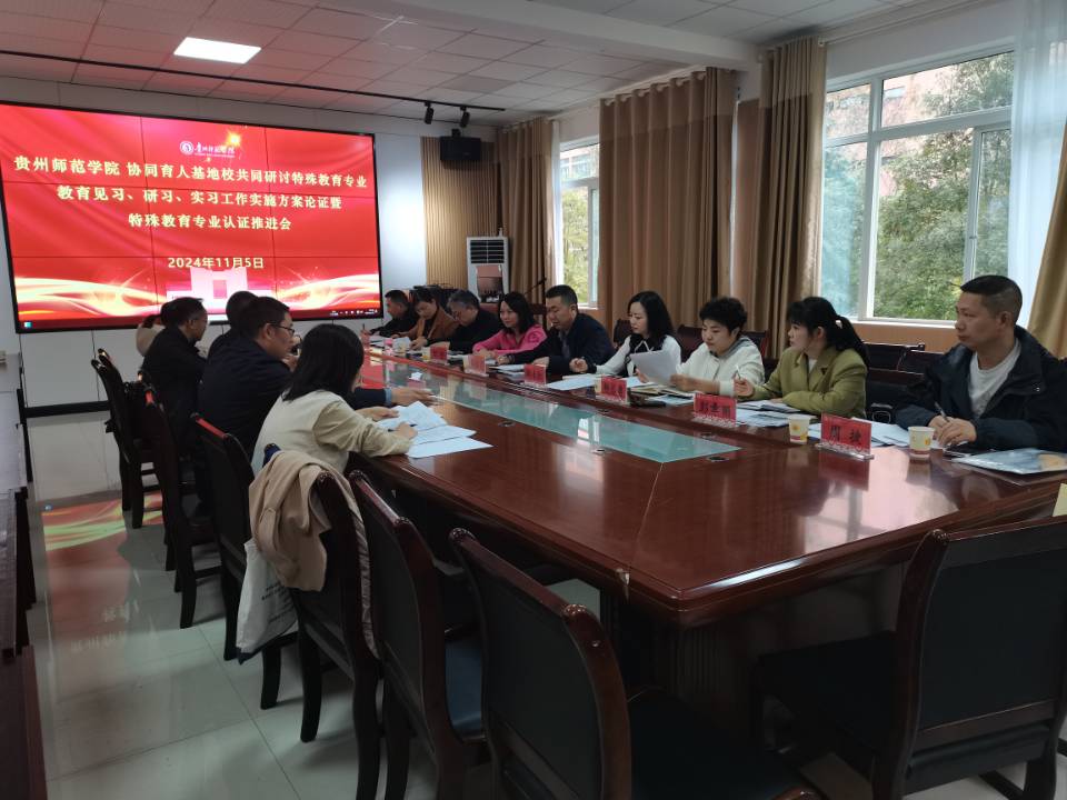 为进一步加快特殊教育专业建设,提升特殊教育专业本科生的实践能力,以及协同育人的质量,11月5日,教育科学学院举办了特殊教育专业教育见习、研习、实习贯通方案修订暨协同育人体系建设专项研讨会。此次研讨会邀请了遵义市特校、播州区特校、遵义市启智学校,贵阳市特校、云岩区惠智学校、南明区启智学校、乌当区特校、花溪区特校等协同育人基地校的校长、副校长、教务主任等一线专家参加,同时,教育科学学院院领导班子成员、特殊教育系系主任和特教系部分教师参加了研讨活动。本次活动在由教育科学学院院长宋万琚教授主持。