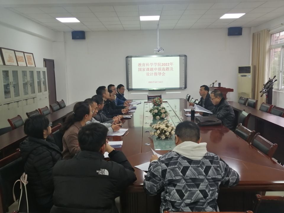 为提高国家课题申报质量,12月16日下午,教育科学学院召开2022年国家课题申报选题及设计指导会。本次会议特邀贵州大学历史与民族文化学院院长杨军昌教授以及贵州大学教科所安世遨教授对项目申报老师的选题及设计进行指导。指导会由副院长袁川主持,拟申报国家项目的教师参加了会议。