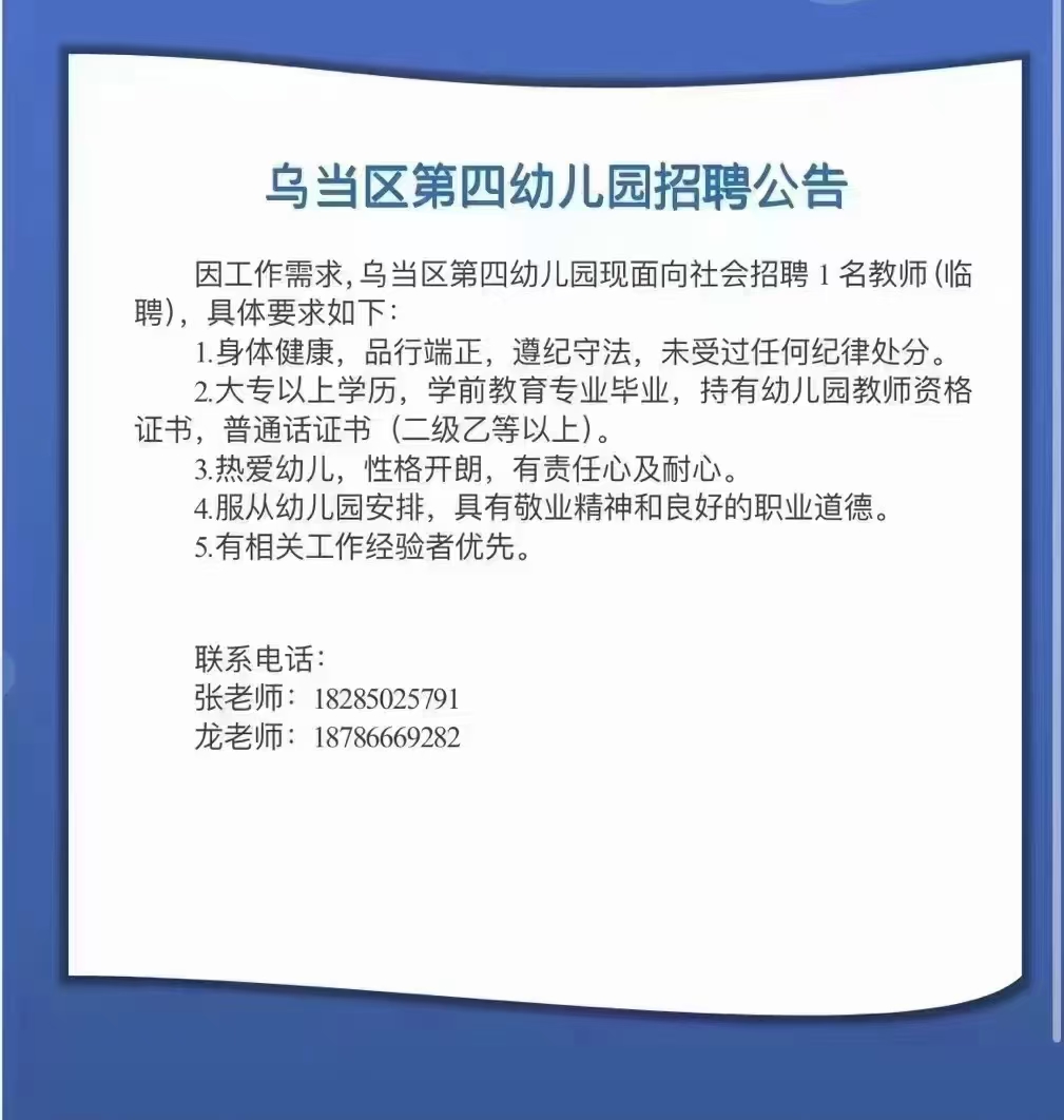 乌当区第四幼儿园招聘信息