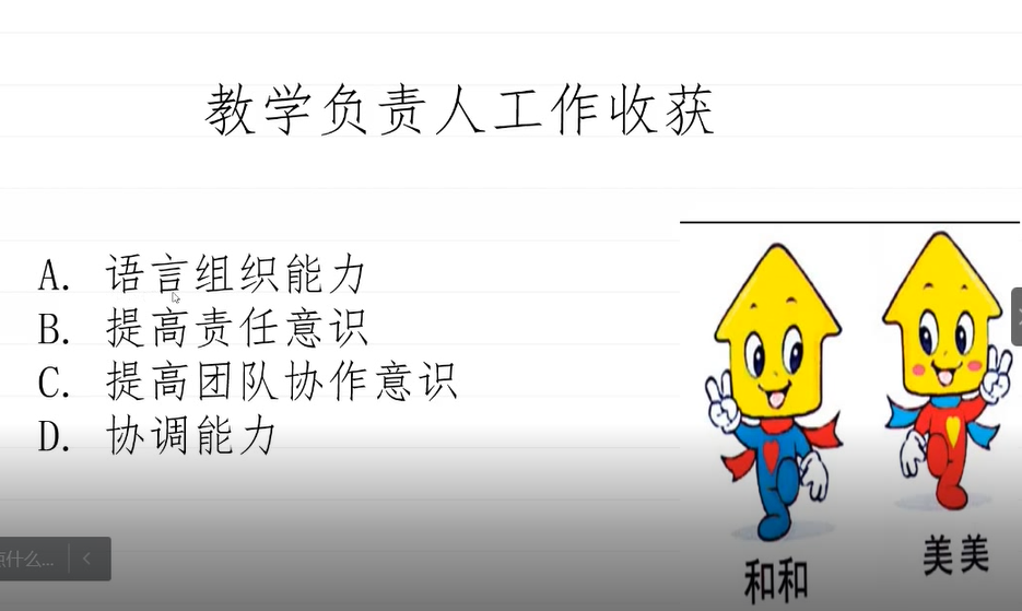 会议伊始,主持人介绍本次会议的目的,紧接着参与评选的各位同学有序进行实习汇报。汇报内容主要从实习单位介绍,实习期间担任的工作以及实习过程中的收获等三方面进行。实习初期主要是熟悉环境、了解学生学习情况以及通过跨班级跨学科等方式进行听课学习。实习中期,主要从事上课、研讨会议以及协助老师管理班级工作。实习后期通过上公开课,反复打磨教学设计能力以及上课技巧。通过以上三个阶段,同学们都收获颇丰。同学们都表示在教学设计、教学巧、语言组织以及课堂突发事件处理等方面能力均得到很大提高,上课时教态也更自然,课堂氛围也更加和谐了。