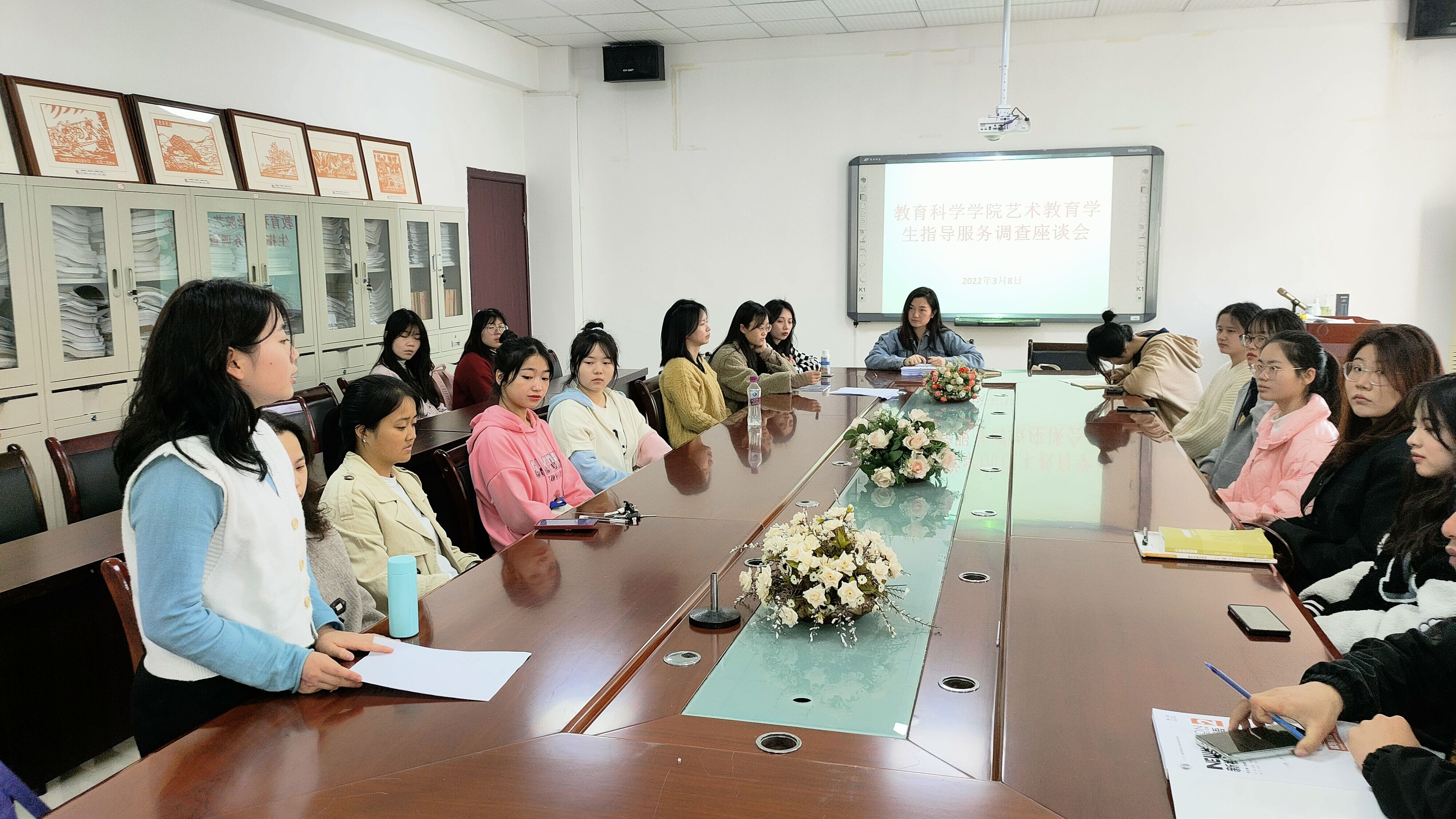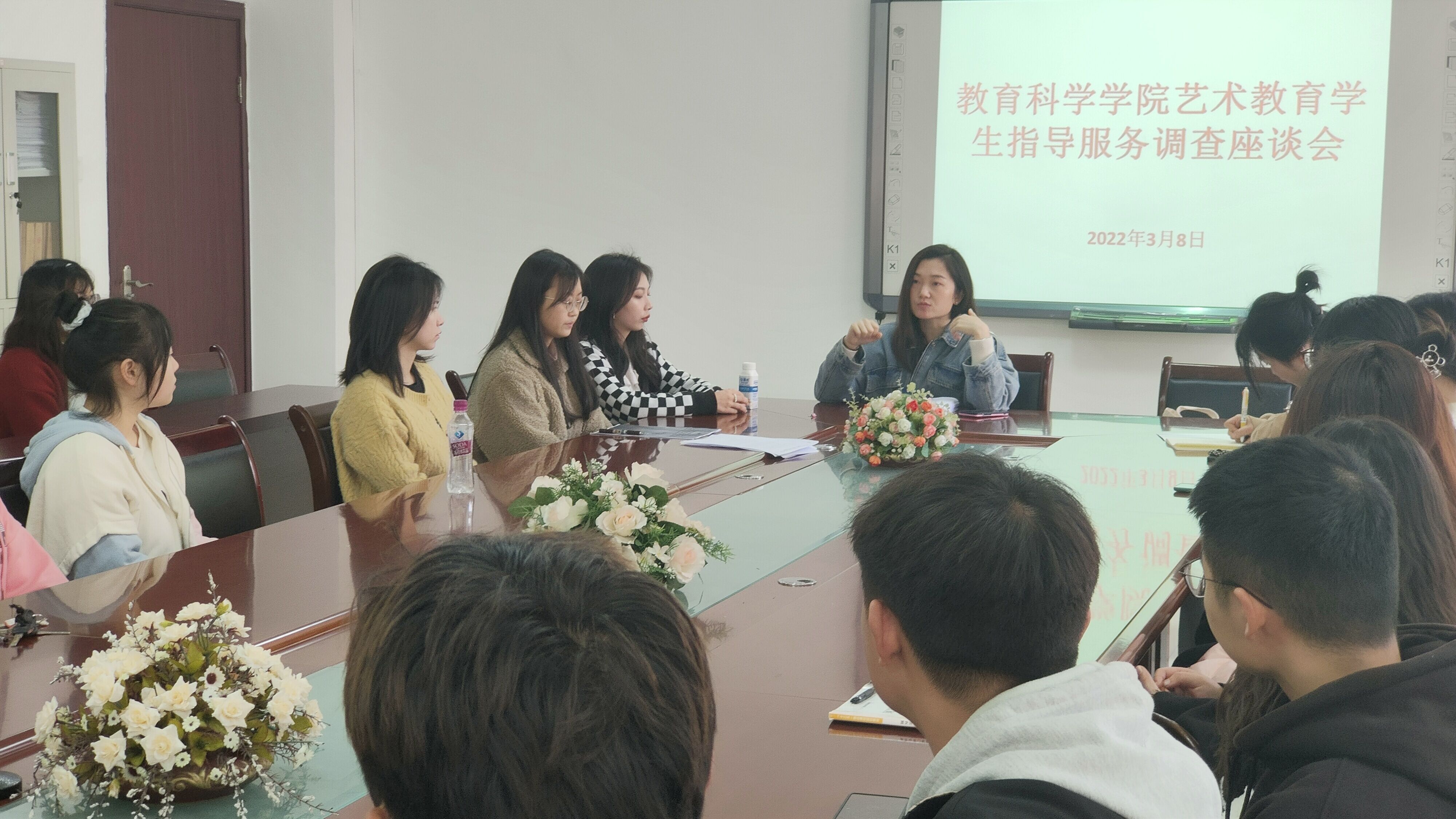 3月8日,为了进一步开展专业学生工作,艺术教育专业在逸夫楼3楼会议室召开了学生指导服务座谈会,座谈会由张怡老师主持。2018至2021级学生代表等20余人参加了本次座谈会。