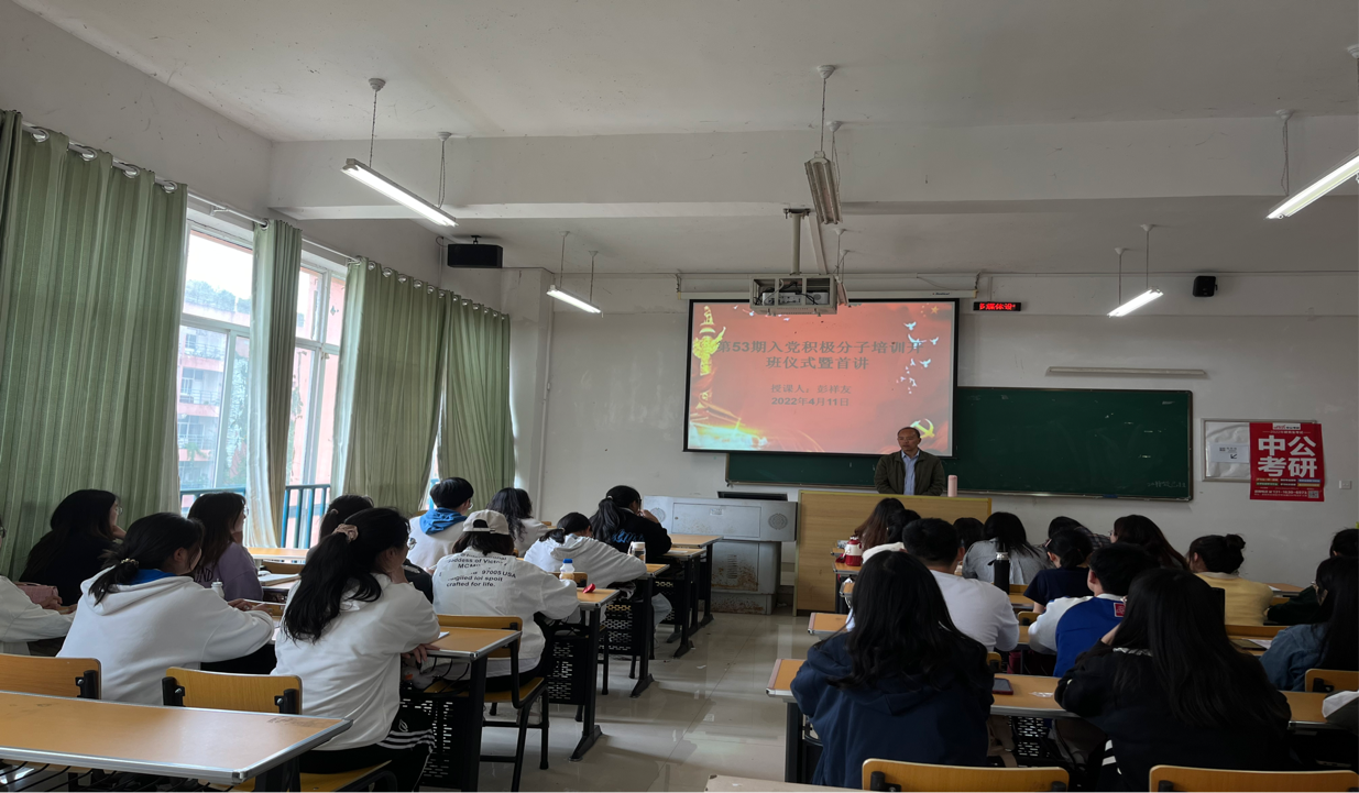 4月11日中午,教育科学学院在逸夫楼503开展第53期入党积极分子培训班开班仪式及第一课。学院党委书记彭祥友出席此次开班仪式并开讲第一课,第53期共计30名入党积极分子参加。
