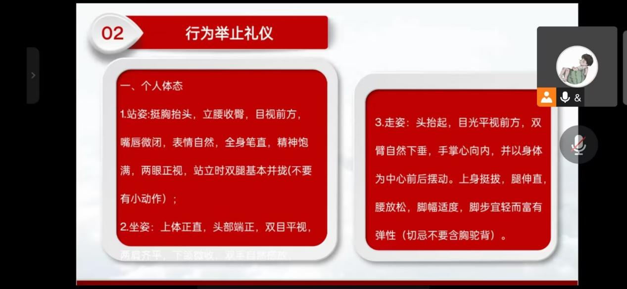 培训会上,首先,各班班长向同学们讲解了大学生文明礼仪的相关内容。通过例举和演示生活中的案例,围绕着学生的个人形象、站姿、坐姿、微笑和礼仪手势动作等逐一进行学习和规范,并从“发型、妆容、配饰、着装”这四个方面讲解了日常工作中的仪态仪表。接着,各班班长就日常生活行为习惯作出了基本要求,包括向老师问好、课堂礼仪等问题。最后,同学们积极参与讨论分享,并且针对礼仪问题进行了交流探讨。 通过本次培训,不仅让同学们掌握了日常社交礼仪等系列礼仪知识,把所学的礼仪知识运用到学习和生活中,而且还让同学们树立了文明的礼仪意识,为在校大学生今后步入社会打下良好基础。