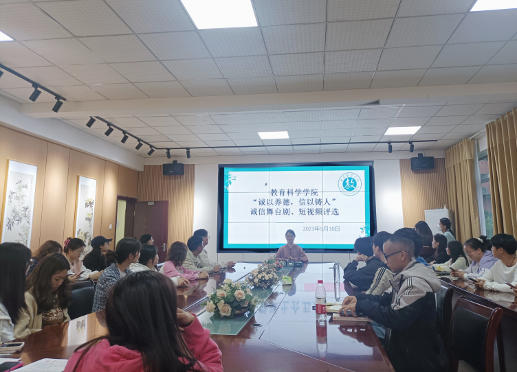 5月10日,教育科学学院在院会议室举行了“诚以养德,信以铸人”诚信舞台剧、短视频评选会议。本次会议由耿鋆主持,学院团委书记张源及学生会全体成员参加。