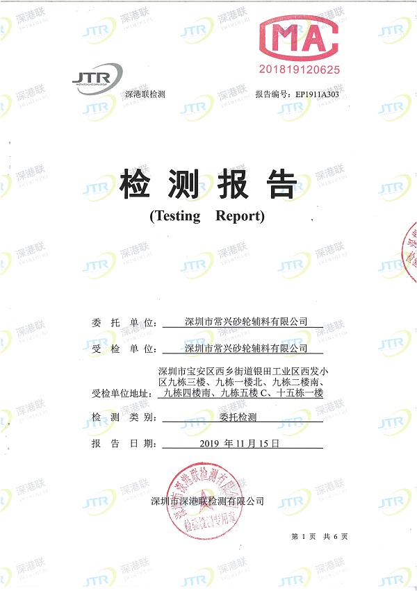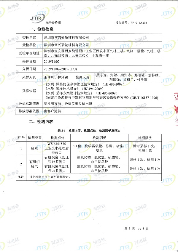 深圳市千亿qy88国际官网入口砂轮辅料有限公司环境检测报告