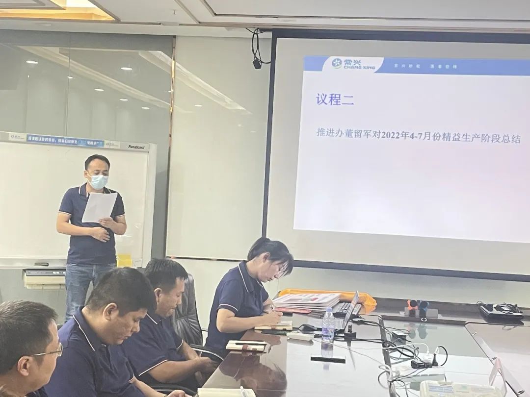会上,常副总强调了精益生产推行的意义和作用,就4-7月份精益生产项目推进情况进行了点评和总结讲话。常副总表示,在各个部门的密切配合下,本期精益生产已稳步有序的开展了四个月,后续将持续优化改善,推动公司管理精益化、规范化建设。最后,常副总对后期精益生产实施作出了要求和进一步指导工作。